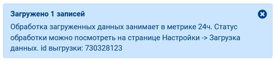 обработки загруженных данных можно в метрике, на странице Настройка -> Загрузка данных в разделе Последние действия