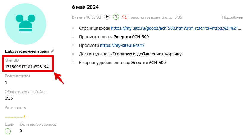 карточка посетителя, по которой мы определяли ClientID примет следующий вид:
