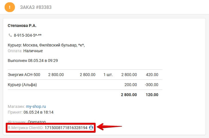 Мы уже нашли ClientID для этого заказа, поэтому просто заходим в деталировку заказа, нажимаем