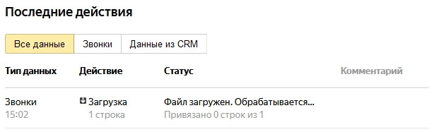 обработки данных все строки будут "привязаны" - каждому звонку будет сопоставлен посетитель, зарегистрированный метрикой.