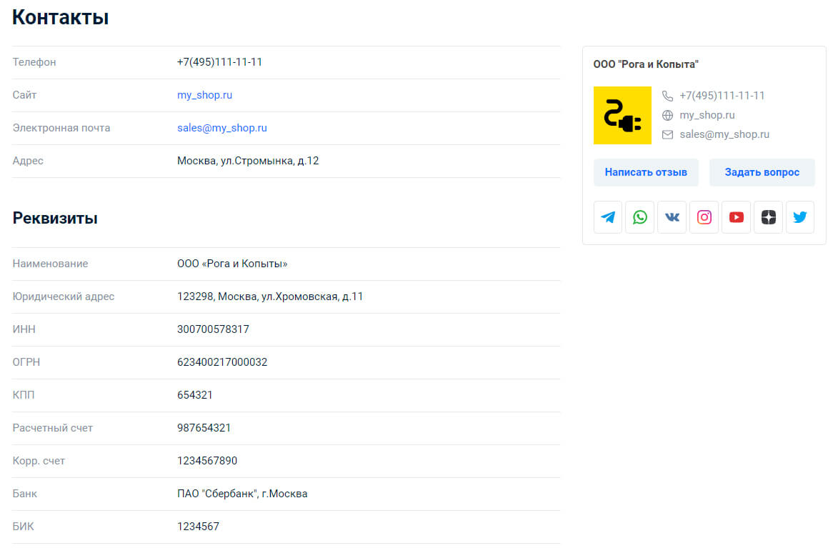 </shop> То, страница "Контакты" приобретёт следующий вид: